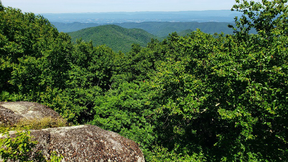 Hiked to the top of flat top mountain before heading home. We had not eaten bfast, but just started hiking and never stopped. It was a beautiful trail with big squeaky poplar trees.
